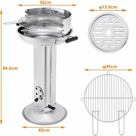 ★Données du produit: matériau: acier inoxydable, poids brut du produit: 6505g, taille du produit: 52 * 43 * 84,5 cm, taille de la grille du gril: φ39 cm, brasero: 43 * 43 * 9 cm, colonne: 57 * 12,5 * 16,5 cm, réglage en hauteur du grillage : 9-20cm (4 couches)