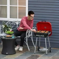 Barbecue C50 Pop. -MARCA: Algón. -Corpo in acciaio smaltato e schermo in acciaio laccato.-Lavora con carbone -Colore: nero.-Misure 50 cm. di diametro e 66 cm. di altezza.-Gambe robuste e resistenti.-Griglia regolabile a diverse altezze.-Resistenza totale a fuego.-Peso: 4,2Kg.