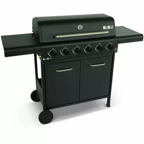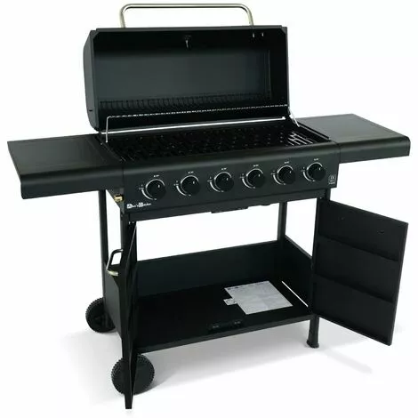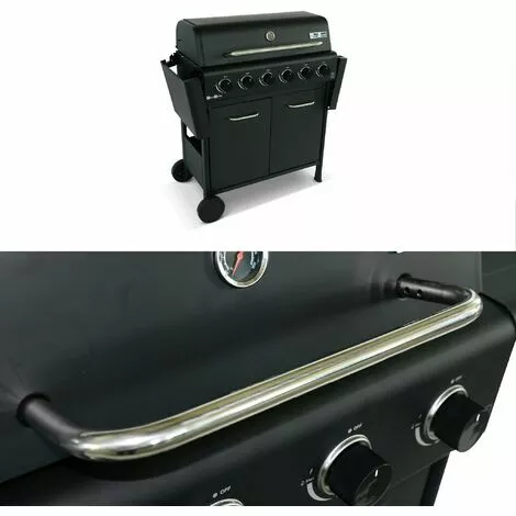 Ce barbecue équipé de 6 feux puissants dispose de nombreux atouts. Ses tablettes latérales sont rabattables, et permettent de poser vos ustensiles quand vous vous en servez puis de les rabattre une fois que vous avez fini de cuisiner. En inox et noir, il a un design linéaire très appréciable. Sa structure en acier est recouverte de peinture époxy, particulièrement durable. Deux grilles de cuissons en acier sont présentes, ainsi qu’une grille garde au chaud amovible. De plus, les poignées et brûleurs sont en acier inoxydables et résistants à la corrosion.