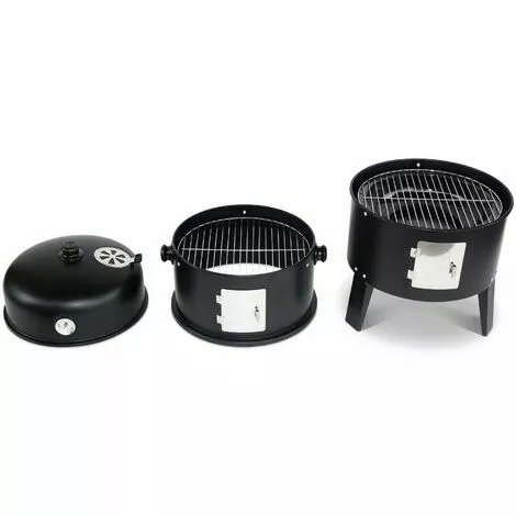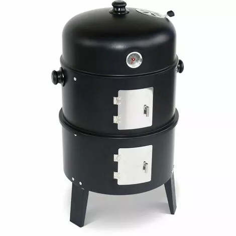 Ce barbecue offre une multitude de possibilités en terme de cuissons et de plats. Il s’utilise en tant que barbecue traditionnel ou fumoir, c’est à vous de voir. Il est composé d’un capot, d’un compartiment de fumage avec porte et d’une cuve à charbon également avec portes. Ces deux portes permettent de rajouter du liquide de fumage et du copeau de bois. Ces deux éléments sont primordiaux car ce sont eux qui apporteront le goût de fumage à votre viande ou poisson. Le charbon de bois peut être au goût de hêtre, de pomme, de clous de girofle… les possibilités sont infinies. Quant au liquide de fumage, il se place dans la coupelle située juste au-dessus de la zone de chaleur (la cuve à charbon), et vous pouvez y mettre de l’eau pour une saveur neutre, ou encore du vin, vinaigre, bouillon… c’est ce qui permet d’obtenir une chaleur humide et une cuisson uniforme, tendre. Si vous souhaitez utiliser le barbecue comme un gril, n’utilisez pas de liquide et la chaleur sera directement en contact avec la nourriture.