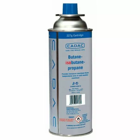 • Cartouche de gaz 220g équipée d’une valve à bride SSN-29 contenant un mélange de gaz butane/propane.