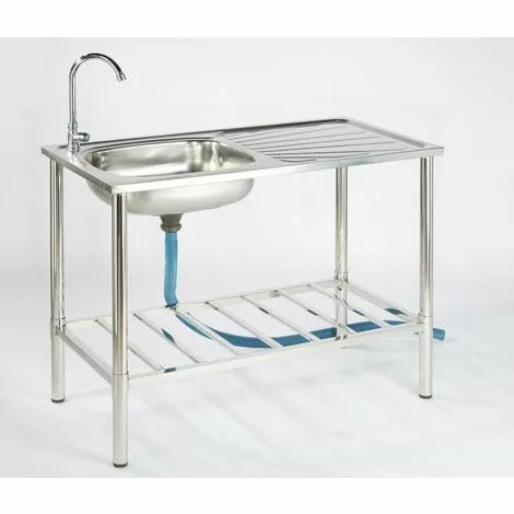 Évier de camping Feedomatic en inox avec robinet et tuyau d’évacuation, 100 x 50,5 x 106 cm