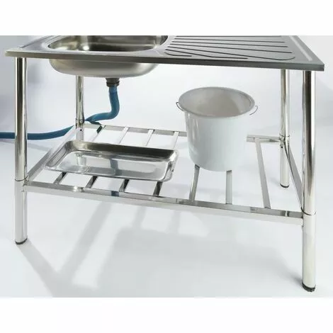 Lavabo multifonctionnel en acier inoxydable, compact et pratique. Le lavabo multifonctionnel est livré avec une table, un robinet, un évier, un tuyau d’évacuation et un plan de travail. Pour l’intérieur et l’extérieur.