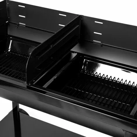 Convient pour 20 personnes. Permet de régler le volume de charbon de bois selon le nombre de convives (utilisation d’une partie de la cuve seulement) ou de cuisiner différents types d’aliments en même temps.
