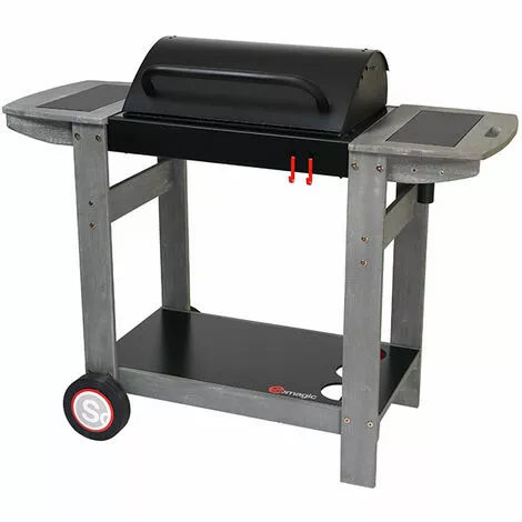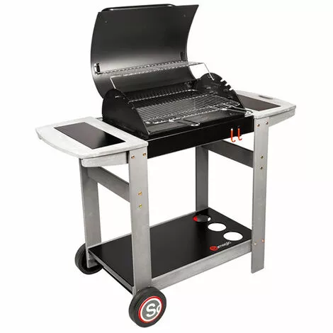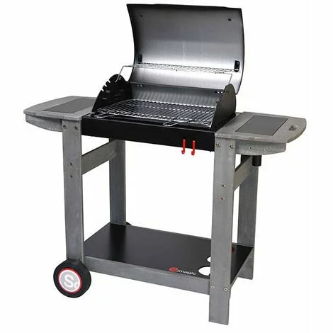 Les grilles de cuisson offrent un maintien au chaud grâce à l’acier chromé. Le chariot est stbale et robuste avec des tablettes latérales en bois, ce qui facilite le déplacement du barbecue et la cuisine sur plan de travail.