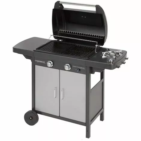 Description ProduitEntretien des matériaux utilisés, performances immédiates de haut niveau, le barbecue à gaz Campingaz Série 2 Classic EXS Vario est l’un des modèles les plus adaptés à la cuisson à l’air libre, de manière saine et économique; facile à transporter dans le jardin ou sur la terrasse de la maison grâce aux deux roues latérales, le Classic EXS Vario a été fabriqué avec un soin extrême, sans lésiner sur les matériaux et les technologies.En plus de la plaque de cuisson, elle était équipée d’un brûleur latéral pour cuire séparément d’autres types d’aliments.La série 2 Classic représente des produits très simples à utiliser, économiques, mais tout aussi fonctionnels.Examinons plus particulièrement les différentes fonctionnalités de l’EXS Vario.CARACTÉRISTIQUESn. 2 brûleurs en acier inoxydable permettant de cuire uniformément différents types d’aliments sur toute la surface de cuissonSurface de cuisson en fonte émailléeCarburant GPLMise en marche avec bouton piézoCouvercle en acier peint avec thermomètre intégré pour vérifier la température interne de la fonction du fourArmoire en acier peint avec 2 portes pour ranger le cylindre de GPL, des outils et des objets utiles pour la cuisson des alimentsGril en acier articulé de 56 x 15 cm avec lequel vous pouvez garder des plats chauds ou ce que nous devons faire cuire à portée de mainCuisinière droite pour la cuisson séparée d’autres types d’aliments avec crochets intégrés pour suspendre des torchons, des gants de cuisine, etc.Plan latéral gauche du support de pliageL’attention accordée par Campingaz à la production de chacun de ses produits constitue la meilleure garantie pour l’achat du barbecue EXS Vario; les technologies et les matériaux utilisés améliorent les performances qui se sont toujours révélées être d’un niveau élevé.Nous recommandons d’utiliser uniquement des détendeurs fixes 28/37 mbar Caractéristiques généralesCarburantGPLBrûleursn. 2 en acier inoxydablePuissance du brûleur / brûleur latéral 7,5 / 2,1 kwConsommation de gaz plat / brûleur latéral546 / 153 g/hAccessoires inclusgrill, plaqueAllumagepiézo-électriqueHauteur de cuisson87 cmSurface de cuisson60 x 35 cmCouvertures 8 / 10 Dimensions127,4 x 54,1 x 108,5 cmPoids 38,10 kg