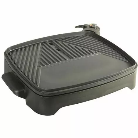 Barbecue électrique sur pieds KitchenChef KCPBBQ0906. Possibilité de l’utiliser en fonction table (L50 x h9,5 x p40). Il bénéficie d’une très grande surface de cuisson pour régaler jusqu’à 10 personnes. Sa plaque de cuisson amovible est en fonte d’aluminium revêtue anti-adhésive avec résistance intégrée pour une diffusion optimale de la chaleur. Thermostat de réglages 5 positions pour cuire toutes sortes d’aliments. Récupérateur amovible des graisses et du jus. Barbecue très stable grâce à 4 pieds tubulaires épais en inox. Plateau inférieur de rangement. Facilement démontable pour un rangement et un nettoyage aisé. Équipé de 2 poignées de transport et livré avec un couvercle.