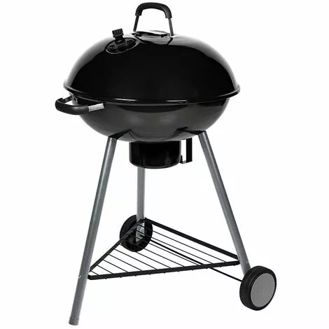 Pour de bons repas en plein air, optez pour le barbecue à charbon noir cuve 57 cm de la marque Neka. Une surface de cuisson de D55 cm, idéal pour 6 à 8 personnes. Les + produits : cuisson grille et four grâce au système d’aération. Déplacement facile grâce aux 2 roues. A monter soi même. Dimensions hors tout : 70,5 x 66 x 103 cm. Poids : 10,5 kg. Matière : acier.