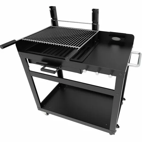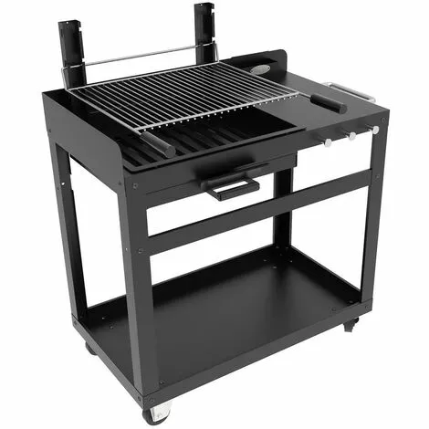 Le barbecue est encastré dans un trolley avec tiroir à cendres pour un nettoyage rapide et facile après utilisation.