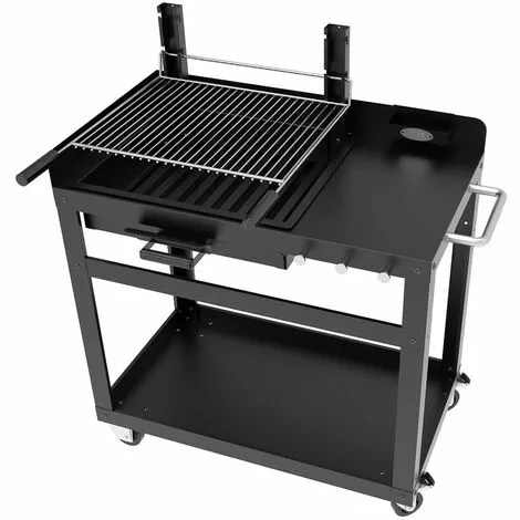 Facile à déplacer grâce à ses quatre roues, dont deux sont munies de freins pour sécuriser le barbecue pendant son utilisation.