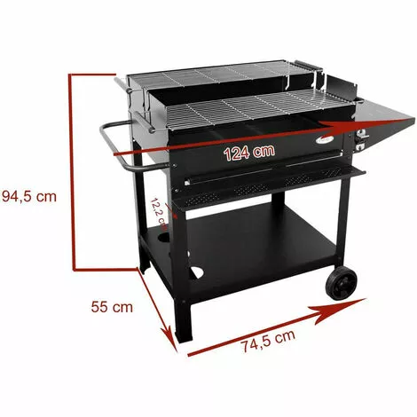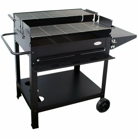 Accessoires inclus : 3 crochets. Tiroir récupérateur des cendres. Tablettes en façade et latérale avec roulettes, facile à déplacer.