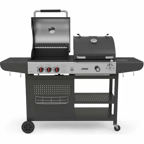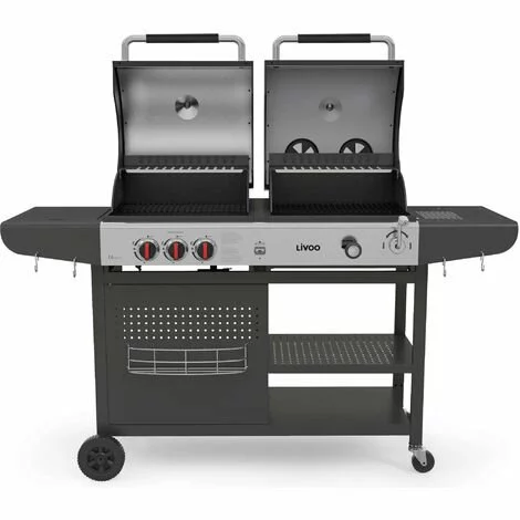 Les plus : Barbecue 2 en 1 charbon et gaz, Allumage automatique