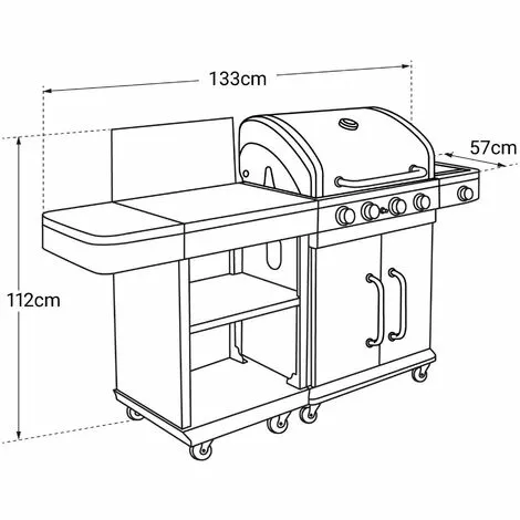 1 barbecue et 1 desserte : L 192,5 × l 57× H 112cm