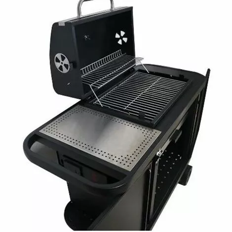 Retrouvez le goût de l’authentique avec ce barbecue au charbon de bois connecté Start’n’Grill , très simple d’utilisation grâce à son allumage automatique. Allumez votre barbecue à distance avec votre smartphone sans le moindre effort grâce à l’ application Start’n’Grill. L’application Start’N’Grill est à télécharger sur Google Play ou Apple Store. L’allumage se fait par simple apport d’air chaud directement sur le charbon à l’entrée de la cuve en acier. Ce procédé d’allumage, outre son confort évident, est donc respectueux de l’environnement et économique , ne nécessite aucun produit toxique pour faciliter l’allumage. Il n’y aura donc également aucun résidu de produits nocifs qui viendront se déposer sur les aliments lors de la cuisson. Le BBQ est équipé d’un grand plan de travail robuste pour poser tous vos plats et préparations, d’un porte-ustensiles permettant de suspendre jusqu’à 4 outils, une desserte basse équipée d’un décapsuleur sous le BBQ vous permettra de stocker un sac de charbon entier ou tout autre ustensile de cuisson.