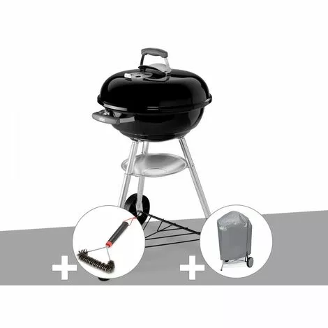 Barbecue charbon Weber Compact Kettle Ø 47 cmPour un hotdog, un hamberger ou des grillades de viande ou de légumes, le barbecue au charbon Compact Kettle de Weber vous aidera à réussir toutes vos recettes de barbecue. Facile à transporter dans le jardin avec ses roulettes et nettoyage simplifié avec son cendrier amovible en aluminium.