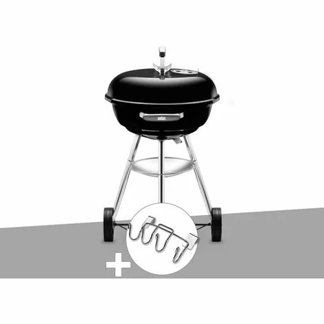 Barbecue charbon Weber Compact Kettle Ø 47 cmPour un hotdog, un hamberger ou des grillades de viande ou de légumes, le barbecue au charbon Compact Kettle de Weber vous aidera à réussir toutes vos recettes de barbecue. Facile à transporter dans le jardin avec ses roulettes et nettoyage simplifié avec son cendrier amovible en aluminium.