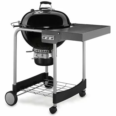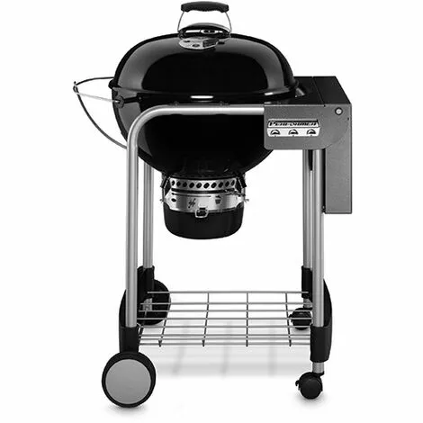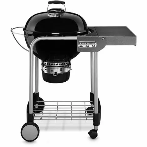 Une authentique expérience de cuisine au charbon avec deséquipements additionnels dont un plan de travail rabattable.SPECIFICITES• Cuve en acier émaillé• Couvercle en acier émaillé• Poignée en nylon renforcée à la fibre de verre• Thermomètre intégré pour le contrôle de la température pendant lacuisson• Clapet d’aération en aluminium• Grille de cuisson Gourmet BBQ System™ en acier chromé, articulée pourajouter facilement des briquettes lors de la cuisson• Grille foyère en acier• Système de nettoyage One-Touch™ en acier inoxydable (pour viderfacilement les cendres et régler la température) avec cendrier amovible• Porte-couvercle intégré pour maintenir le couvercle lors de son ouverture• Plan de travail rabattable (avec porte-ustensiles)• 2 Roues et 2 roulettes orientables et autobloquantes• Bol doseur de briquettes : permet de doser parfaitement les briquettes