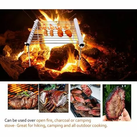 – Un gril de camp léger et portable en acier inoxydable, assez grand pour cuire de la nourriture pour 3 à 5 personnes au camping ou lors de la prochaine fête au hayon.