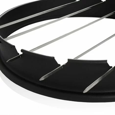 Grâce au cadre pratique, les aliments n´entrent pas en contact avec la grille du grill, restent agréables et juteux et ne se dessèchent pas. Il ne roule pas sur le grill et les brochettes peuvent être tournées facilement.
