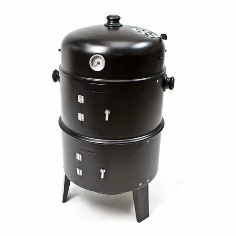 Avec le Barbecue/fumoir de Dema, vous êtes le maître quand il s’agit de faire des grillades ou des fumaisons. Grâce à son thermomètre, vous décidez vous-même du fumage à froid (15-25°C), tiède (25-50°C) ou chaud (50 à 90°C). Barbecue fumoir au charbon ou briquettes, du bois de fumage peut être ajouté pendant la combustion.