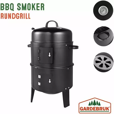 Avec notre barbecue smoker vous pouvez griller, rôtir et fumer vos aliments.La température peut être parfaitement ajustée grâce aux trous d´aération situés sur le tube d´évacuation d´air. Afin d´obtenir une lecture précise de la température, le fumoir est équipé d´un thermomètre. Vous pouvez également alimenter le feu pendant la cuisson en ouvrant la porte inférieure. L´autre porte située dans la partie centrale sert à contrôler l´aliment sur la grille.