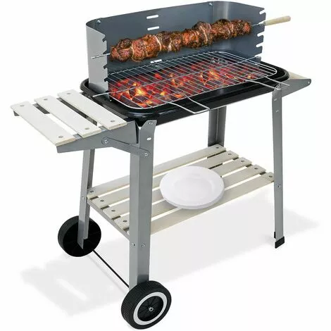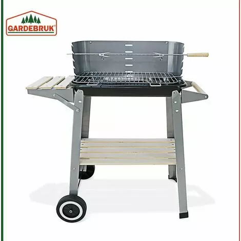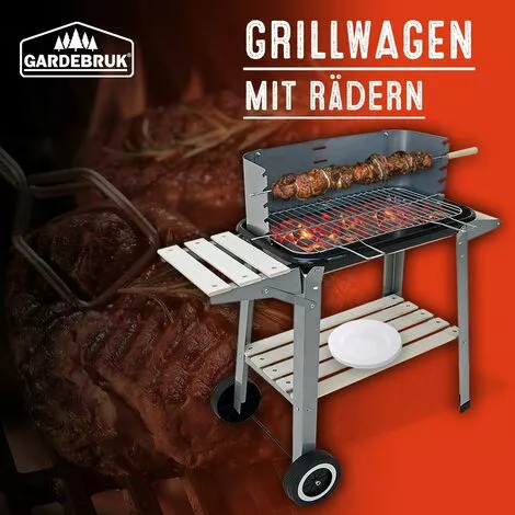 Le chariot à grill pèse 7 kg et possède une structure très robuste. La livraison inclus une broche rôtissoire supplémentaire pour griller du poulet ou autres aliments.