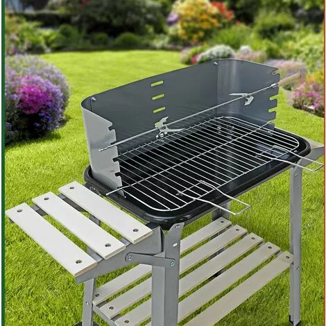 Les deux étagères, sur le côté en bois et en dessous en métal, sont particulièrement pratique pour y laisser votre nourriture à griller et vos accessoires à porter de mains. Le brasero est émaillé et la grille est composé d´acier inoxydable chromé.