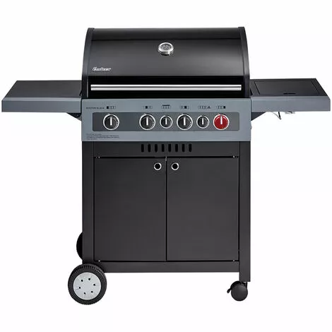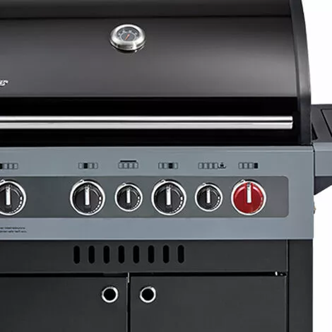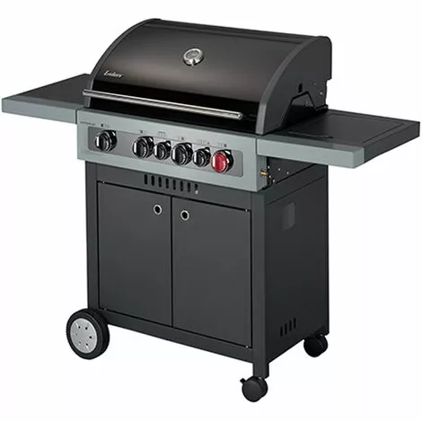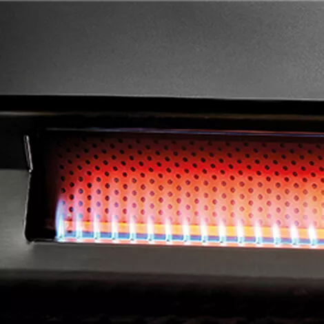 PRATIQUE & EFFICACE Grille en inox (en quatre parties) pour une distribution homogène de la chaleur et un nettoyage facile ; Brûleur arrière infrarouge (4 kW) : pour des viandes à la fois juteuses et croustillantes ; Foyer latéral (3,15 kW) : pour la préparation des accompagnements ; peut également servir de surface de stockage une fois le couvercle fermé ; Une vaste grille de maintien au chaud en inox qui se déploie à l’ouverture du couvercle ; 4 brûleurs en inox pour une puissante cuisson directe ou indirecte