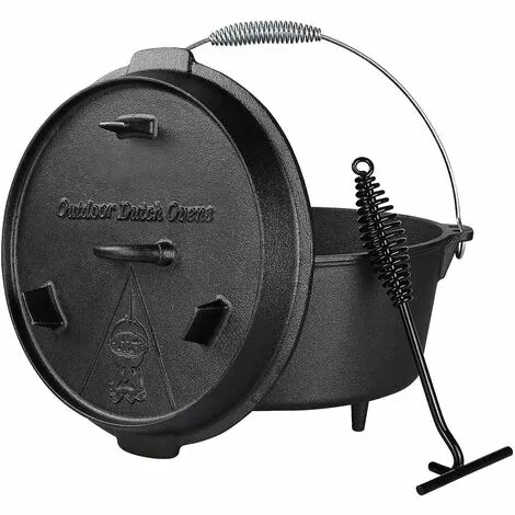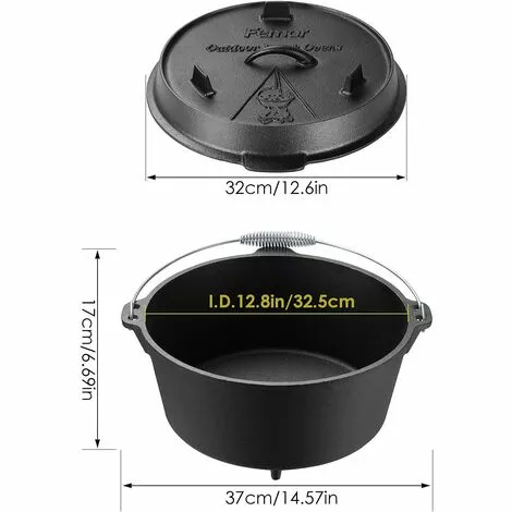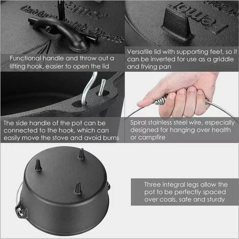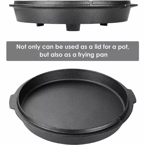 【Multifonctionnel】Le corps et le couvercle ont des pieds: lors de l’utilisation d’un pot hollandais, aucun support supplémentaire n’est nécessaire et du charbon de bois peut être ajouté directement au fond. De plus, le couvercle a une grande capacité,si vous le retournez, vous pouvez l’utiliser comme poêle à griller ou assiette de service !