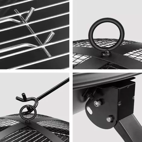 Excellente qualité:Le forfait comprend 3 * pieds pliants détachables, 1 * four, 1 * maille à charbon, 1 * grill en acier inoxydable, 1 * fourche en fer avec manche en bois, 2 * petite fourchette en acier inoxydable, 1 * couvercle en maille.Le produit a une excellente résistance à l’usure, pas facile à rouiller, pas de retrait, pas de déformation, sûr à utiliser, facile à nettoyer