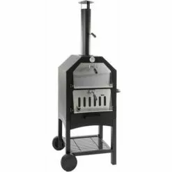 - Ce barbecue à pizza est fabriqué en métal et possède un revêtement noir