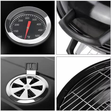 un rangement pratique. Le panier à charbon en émail robuste et la grille chromée sont amovibles et très faciles à nettoyer. Le couvercle supérieur est également détachable, facile à nettoyer et vous offre également plus d’espace pour la cuisson. De nombreuses personnes peuvent faire un barbecue en même temps.