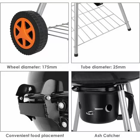 ★CONCEPTION INGÉNIEUSE: La ventilation chromée facilite l’accélération de la cuisson. Le cendrier barbecue rond au charbon de bois ne laissera pas tomber les cendres et protège votre jardin de la pollution. Avec de grandes roues en bas, vous pouvez déplacer plus facilement le gril à charbon.