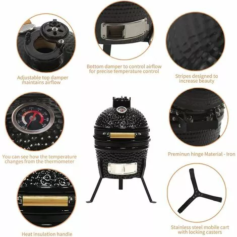 KAMADO 34CM Gril au Charbon de Bois en Ceramique & Inox