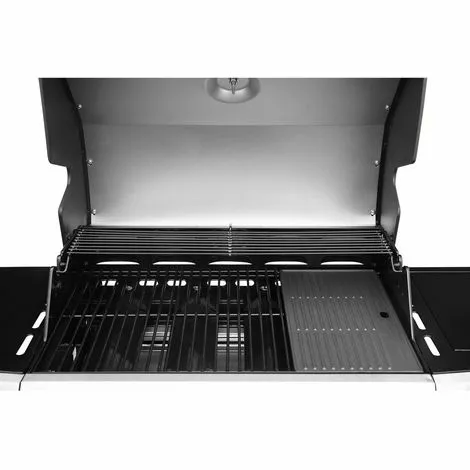 Barbecue Gaz – Éclairage LED – 5 brûleurs dont 1 latéral – Eclairage LED sur les 3 boutons de contrôle – Acier – Surface de cuisson : 67 x 44 cm – Jauge de température intégrée – Espace de rangement – Housse protection inclus – Gaz butane – Détendeur et tuyau non inclus – La bouteille de gaz ne doit pas être placé à l’intérieur du barbecueUn barbecue en acier inoxydable Le Barbecue gaz Bingo 5 est majoritairement conçu en inox. Une telle structure lui permet d’être utilisé dans un environnement extérieur en toute sécurité. Ce matériau est parfait car il insensible à la rouille, à la corrosion et est résistant. Par ailleurs, il est très résistant à la chaleur.