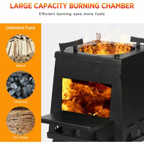 Facile à installer et à cuisiner un repas avec des combustibles illimités : bois, brindilles, branches, feuilles.