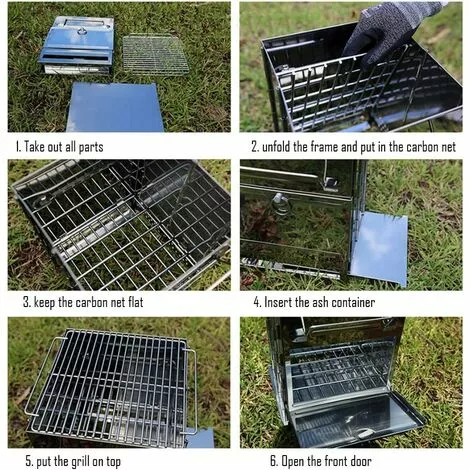 Utilisation : 1 à 2 personnes. Matériau : Corps en acier inoxydable 430 # + grille en acier inoxydable 304. Taille ouverte : 21 x 15 x 15 cm. Dimensions pliée : 21 x 15 x 4 cm. Zone de cuisson : 15 x 15 cm. Poids de l’article : 0,85 kg. Dimensions du colis : 23 x 17,5 x 5,5 cm. Poids du colis : 0,97 kg. Contenu :1 réchaud + 1 grille de barbecue + 1 sac
