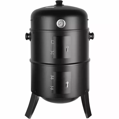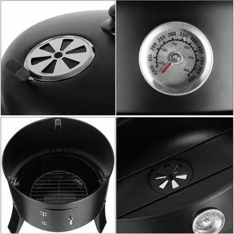★【Multifonction】 Fumoir Smoker pour Barbecue au charbon de bois multifonctionnel 3 en 1. Fonction de grill, fumage, et cuisson afin de répondre à vos différents besoins. La grille du fumoir peut non seulement être utilisée comme fumoir avec 2 grilles de gril et un bol d’eau, mais aussi comme grille ronde lorsque la partie centrale est retirée.