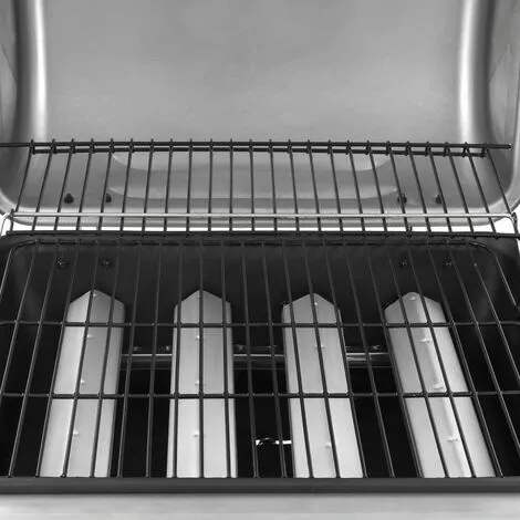 Ce barbecue au gaz est doté de 4 brûleurs et il est idéal pour faire la fête en plein air avec votre famille et vos amis. Profitez d’une expérience de cuisson grisante et grésillante en plein air en transformant votre jardin en une deuxième cuisine ! Le gril à gaz dispose d’un design élégant et fonctionnel. Il a une grande surface de cuisson et une hotte robuste avec un thermomètre intégré qui affiche avec précision la température de cuisson. Les tables latérales offrent un espace de travail supplémentaire pour faire des sauces ou vos plats favoris. Un récipient d’égouttage à graisse amovible est également inclus et est facile à nettoyer. Fabriqué en matériaux résistants, le gril est très durable. L’étagère dessous fournit un grand espace pour ranger les accessoires de cuisine et les ustensiles. Grâce aux 2 roulettes robustes, le gril est facile à déplacer. La livraison comprend également une housse de barbecue pour protéger le gril contre la pluie et la poussière. Pour connecter le barbecue à la bouteille à gaz, un tuyau de gaz et un régulateur de pression approprié sont requis, mais ils ne sont pas inclus dans la livraison.
