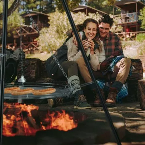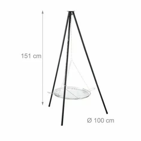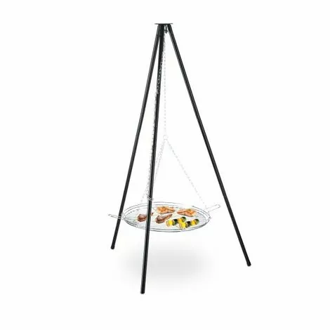 Structure sur trépied_x000D_Réglable en hauteur_x000D_Grille de foyer avec poignée_x000D_Montage facile_x000D_Pour soucoupe de feu et feu de camp