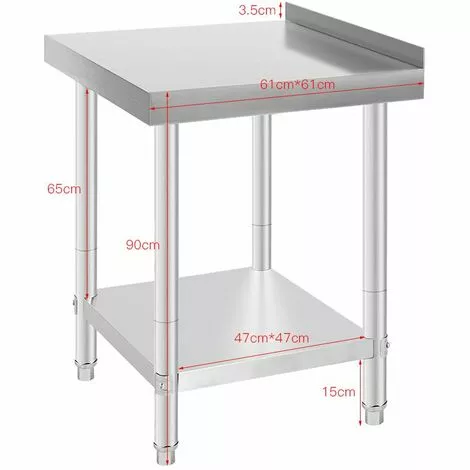 JEOBEST®Table De Travail Ou établi En Inox Avec Rebord De Protection. Table De Travail En Inox, Table De Travail Professionnelle Acier Inox Pieds Ajustable Avec Rebord Hygiénique – Argent