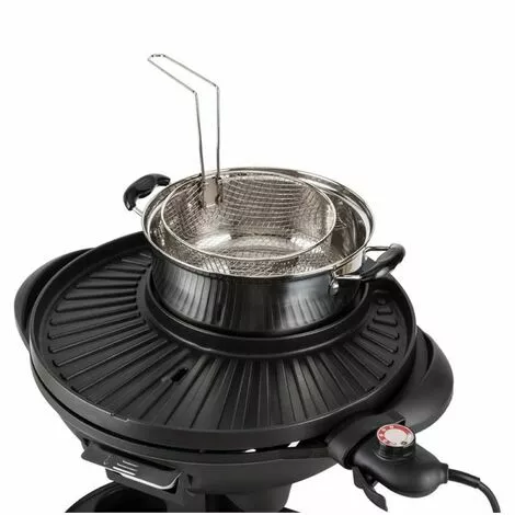 Ce n’est pas tout : ce grill électrique de Klarstein possède aussi sa propre casserole en acier avec un diamètre de 24 cm et un couvercle en verre, prêt à être accueilli par l’encoche ronde sur la surface de grill. Ainsi, vous pouvez préparer l’accompagnement en parallèle du barbecue ou bien garder vos aliments grillés au chaud. Sur table, la casserole convient aussi pour la fondue ou la friture. Pour cette dernière, un panier à frites avec poignée emboîtable rentre parfaitement dans la casserole et vous permet même de préparer des frites pour accompagner vos viandes. Lorsque la casserole n’est pas utilisée, vous pouvez aussi utiliser son encoche sur la surface de gril pour confectionner des pancakes ou des omelettes.
