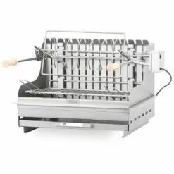 – Un foyer vertical avec un tournebroche, un moteur électrique force 10kg et une broche anglaise