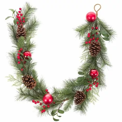 LOLA HOME Guirlande De Noël Avec Pin Et Houx En Plastique PVC Vert 150x18x12 Cm