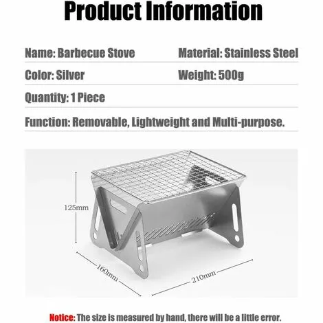 Mini gril pliable : notre gril de camping est facile à installer et à enlever, ce qui le rend parfait pour les déplacements. Les trous de ventilation permettent une bonne entrée d’air pour des grillades rapides et confortables. Convient pour 1-2 personnes.