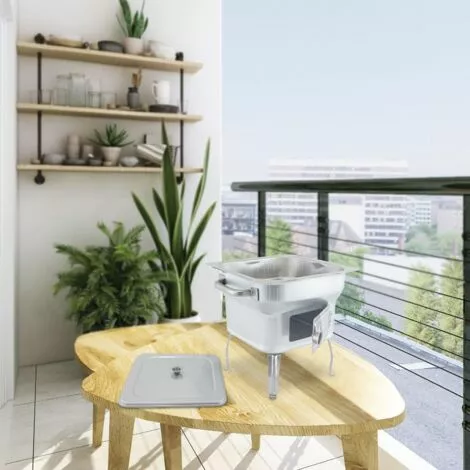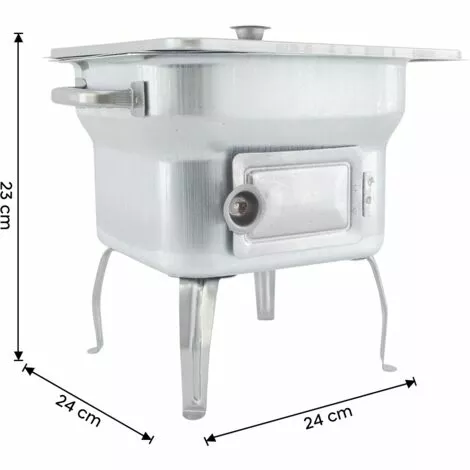 Fabriqué en tôle emboutie, il est équipé d’une porte pour insérer les braises, d’un couvercle et d’une petite casserole. Vous pourrez griller légumes, viandes et autres plats très facilement : la cuisson sera parfaite et vous aurez un encombrement très réduit sur votre balcon !