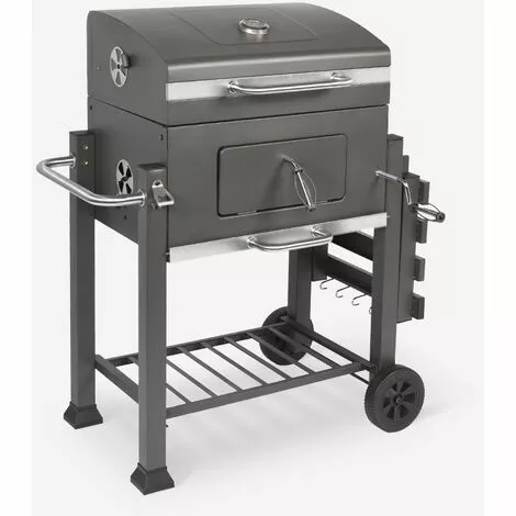 De nombreux barbecues sur le marché offrent souvent un endroit pour cuisiner les plats et rien d’autre, ignorant de nombreux petits conforts. Mr. Tuzza, quant à lui, a décidé d’inclure dans le T-BONE toutes les options dont tout nouveau cuisinier, mais aussi tout professionnel, sait qu’il veut lors d’un barbecue. En partant du couvercle avec le thermomètre utile, pour toujours garder la température de cuisson sous contrôle, en passant par le tiroir avant pratique pour le charbon de bois ; on trouve également une tablette latérale rabattable, très pratique pour placer des ustensiles ou des plateaux pour nos plats cuisinés ou à cuisiner ; sur le côté de ce dernier, nous avons également des crochets pour suspendre des torchons ou des pinces à barbecue, ou notre tablier préféré. Le compartiment inférieur est parfait pour ranger les sacs de charbon de bois, de sorte qu’il soit toujours prêt à être utilisé en cas de besoin. Simple à monter, en acier inoxydable, le grand gril peut accueillir la cuisson de nombreuses personnes, afin de ne pas exclure même un ami du prochain barbecue : grâce aux deux roues montées sur la structure, nous pouvons le déplacer où nous voulons dans notre jardin et cour. N’attendez plus, commandez-le maintenant dans notre catalogue à un prix promotionnel !
