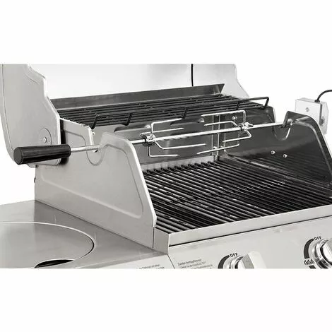 Tournebroche: Matériel: Acier inoxydable, couleur: argent, dimensions: Environ 107 cm de long.