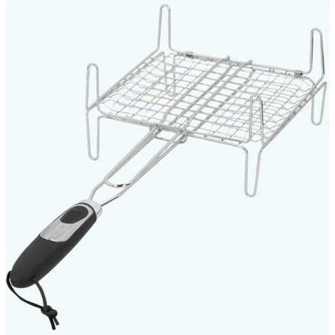 Avec ce panier pour barbecue pratique et facile d’utilisation, vous pouvez faire cuire plusieurs plats à la fois et les plats à griller ne s’effondreront pas. Ce modèle possède un système d’élévation de sorte que le panier du gril soit environ 6 cm plus haut que la grille du gril du barbecue. C’est pratique si vous souhaitez placer votre viande légèrement au-dessus du feu. La viande peut ainsi être bien serrée dans la grille, elle ne tombera pas. La taille totale est d’environ 57 x 23 x 13 cm, la grille est d’environ 23 x 21 cm. Le panier est en acier inoxydable et a une poignée robuste