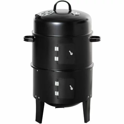 Variez vos cuissons et plats grâce à ce joli barbecue fumoir grill braséro 3 en 1. Composé de 3 parties (cuve à charbon avec porte, compartiment de fumage également à porte, et capot) et de 2 grilles, la chaleur est générée au niveau de la cuve à charbon, et vous pouvez y mettre plusieurs types de copeaux de bois pour varier le goût du fumage. C’est le barbecue pratique pensé pour une cuisson maîtrisée (thermomètre, aérateur).